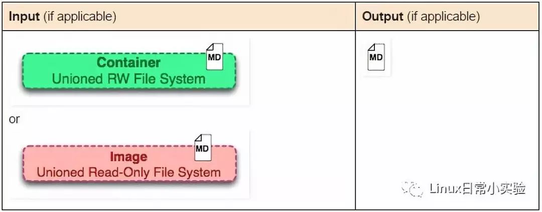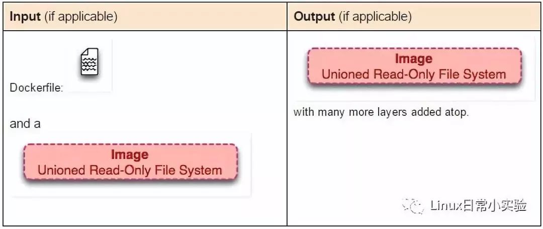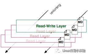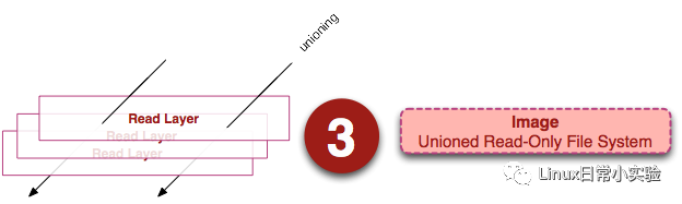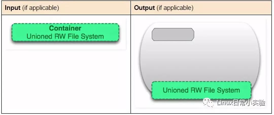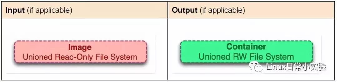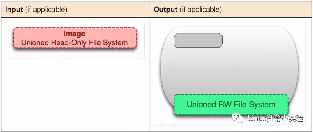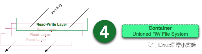 需要创建的镜像以及需要在容器内运行的命令。当Daemon接收到创建镜像的信号后,会进行如下操作,为方便阅读粉色方框代表只读,绿色方框代表可写。