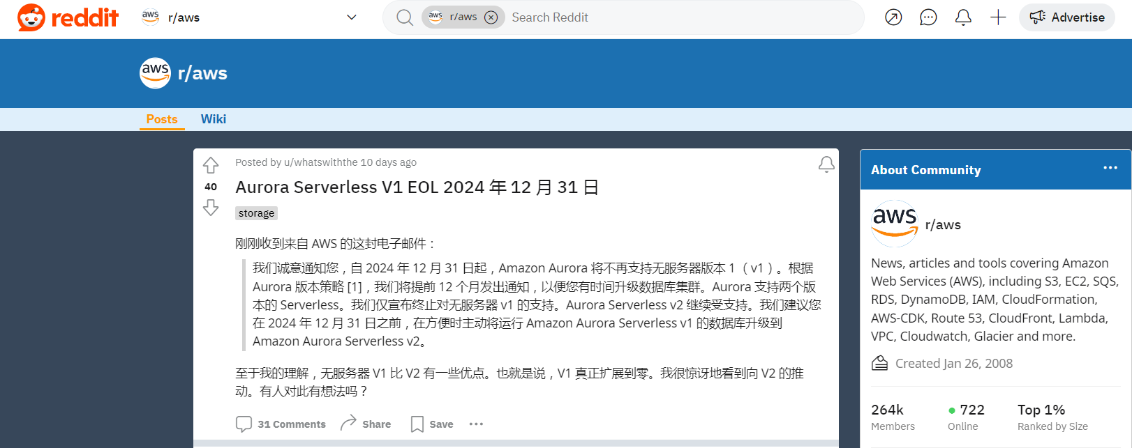 除了发送给 Aurora Serverless v1 现有用户的电子邮件外,该云提供商尚未发布任何官方公告或分享有关该服务停用的详细路线图。
