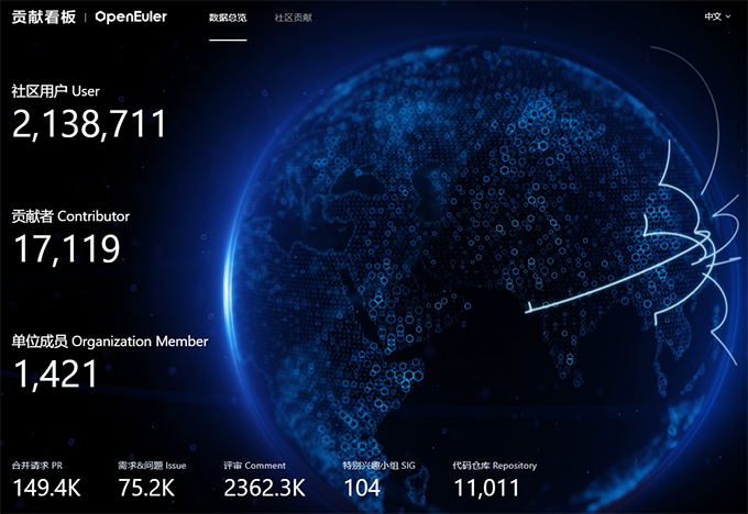 截止2023年12月31日,openEuler社区用户累计超过213万。超过17,000名开发者在社区持续贡献。社区累计产生 149.4K个PRs、75.2K条Issues。截至目前,加入 openEuler 社区的单位成员超过1400家,12月新增141家。