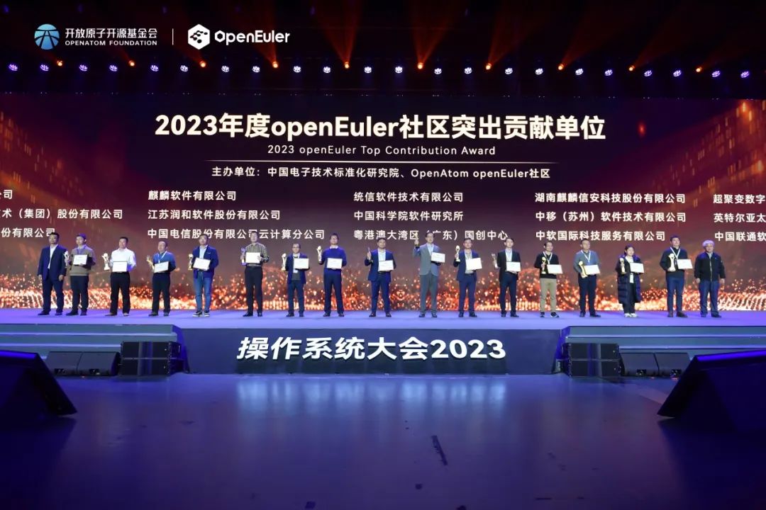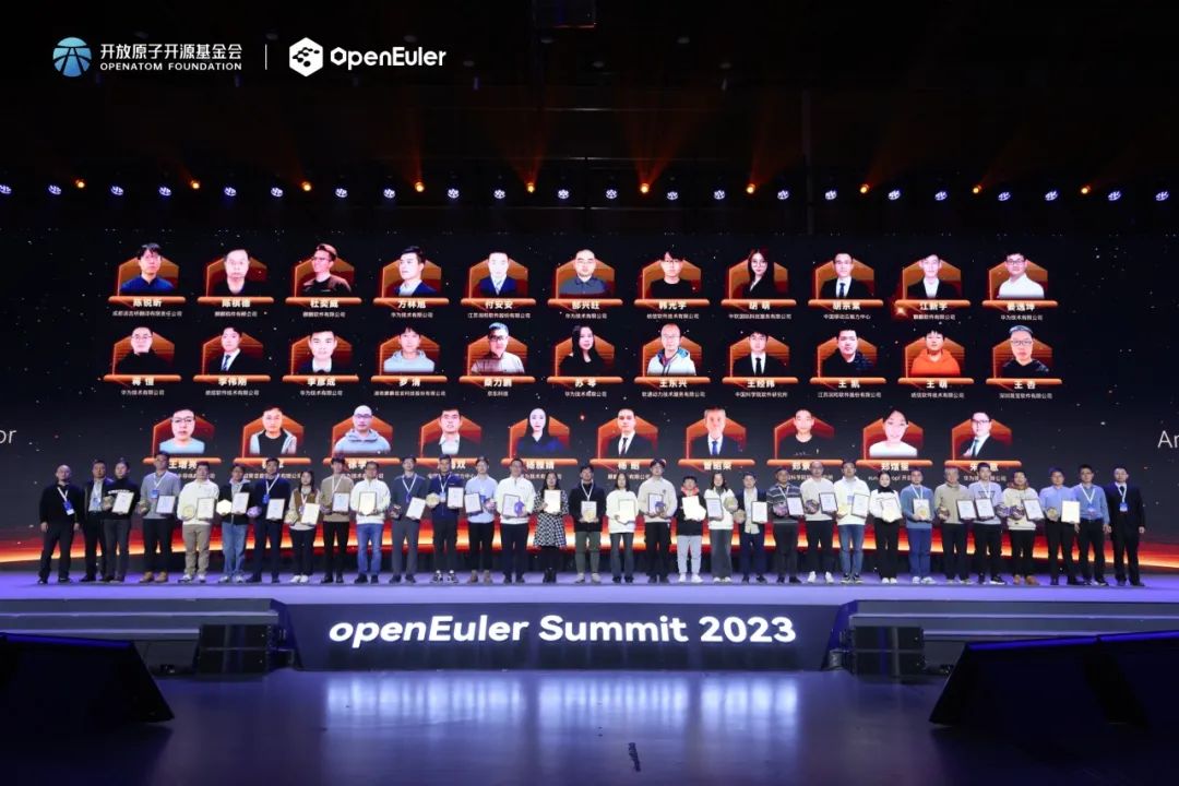 openEuler的繁荣离不开行业用户、社区伙伴、开发者的持续贡献。 2023年度openEuler领先商业实践项目、2023年度openEuler社区突出贡献单位、2023年度优秀项目、2023年度贡献之星等奖项相继在大会中揭晓。感谢大家对社区的贡献与支持。