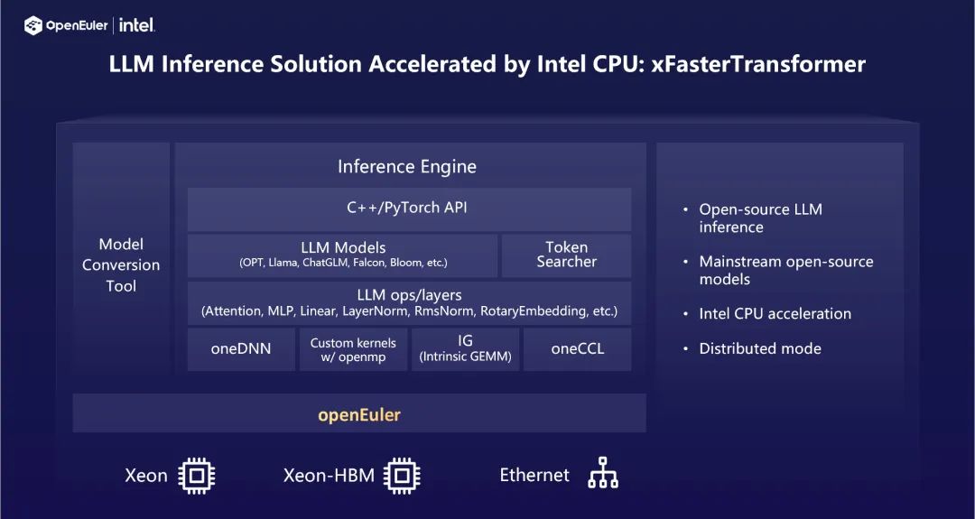 由Intel主导的xFasterTransformer亮相openEuler Summit,提升大模型在CPU上的推理速度