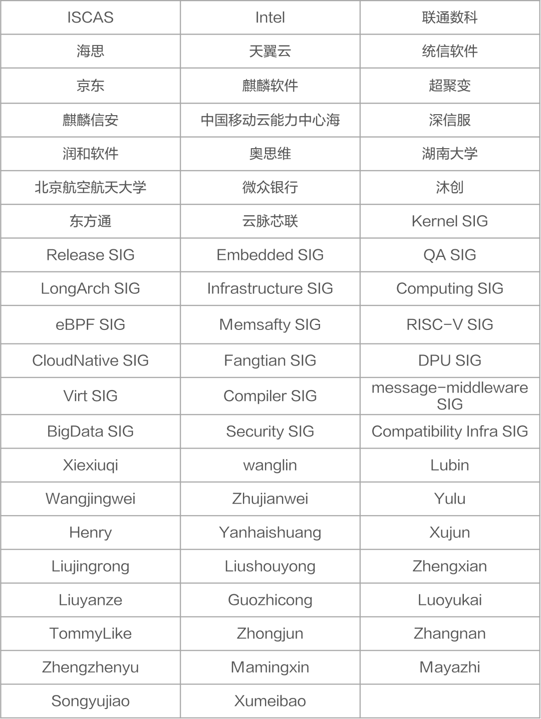 因为大家的辛勤贡献,openEuler的每一天都发生着好的事情。小编限于视野和能力,难免有所遗漏,在此表示歉意。同时,衷心感谢社区朋友、开发者们以及openEuler SIG组成员的贡献: