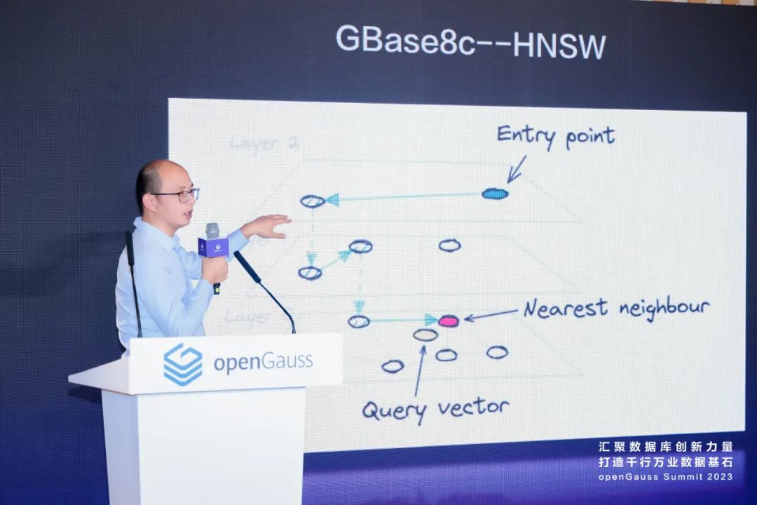 GBASE南大通用GBase 8c产品总经理张益在openGauss Summit 2023主论坛上发表“向量加持、一专多能 GBase 8c赋能大模型时代政企数字化转型”主题演讲。