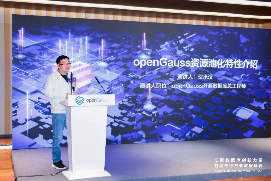 openGauss开源数据库总工程师贺承汉发表“openGauss资源池化特性介绍”主题演讲。