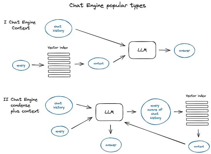 一种受欢迎且相对简单的方法是使用 ContextChatEngine[28]。这种引擎首先检索与用户查询相关的上下文,然后将其连同聊天历史从内存缓冲区一起发送给 LLM,确保 LLM 在生成下一条回答时能够理解之前的上下文。