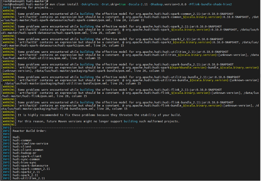 mvn clean install -DskipTests-Drat.skip=true-Dscala-2.11-Dhadoop.version=3.0.0-Pflink-bundle-shade-hive2
