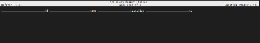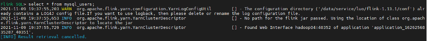 Flink SQL> select * from mysql_users; -- 查询到一条insert数据