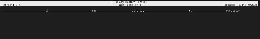 查询视图数据也是空结构,但增加了分区字段: