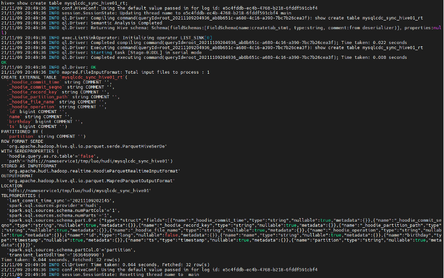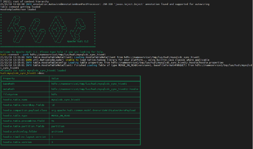 hudi->connect --path hdfs://nameservice1/tmp/luo/hudi/mysqlcdc_sync_hive01