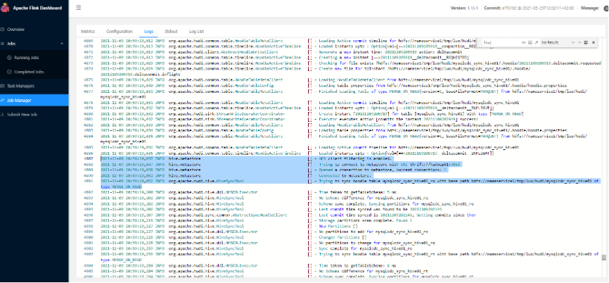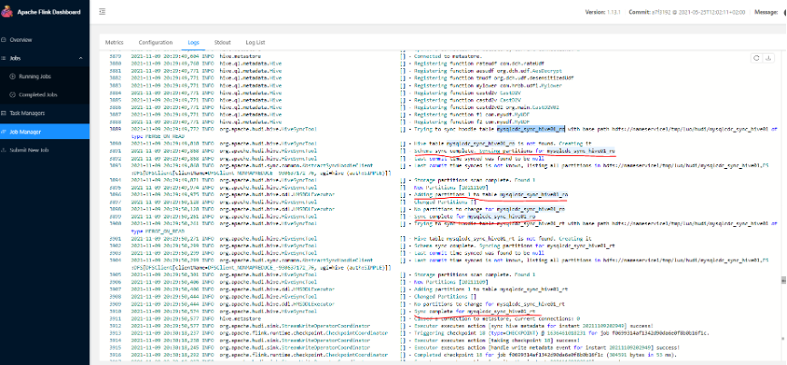 Flink jobmanager log sync hive过程详细日志