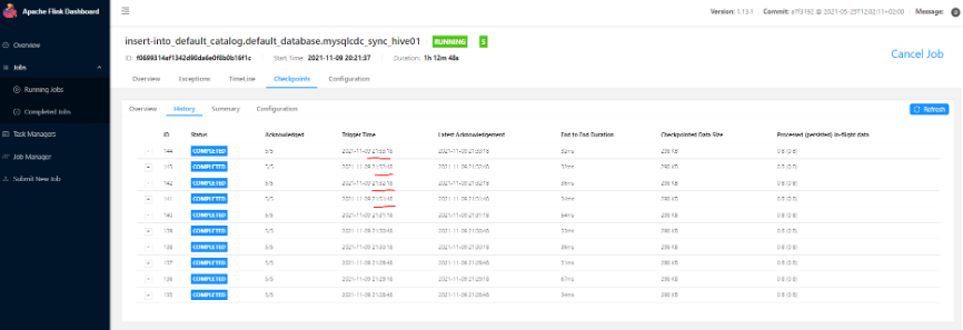 Flink 任务checkpoint 情况: