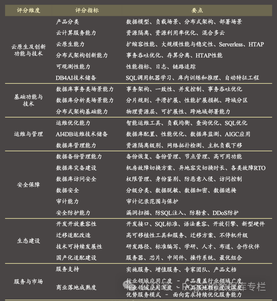 从原文我们可以看到,沙利文此次评测主要是从几个主要的维度:云原生及创新功能与技术、基础功能与技术、运维与管理、安全保障、生态建设、服务与市场 等六大方面。具体的评分标准大致如下: