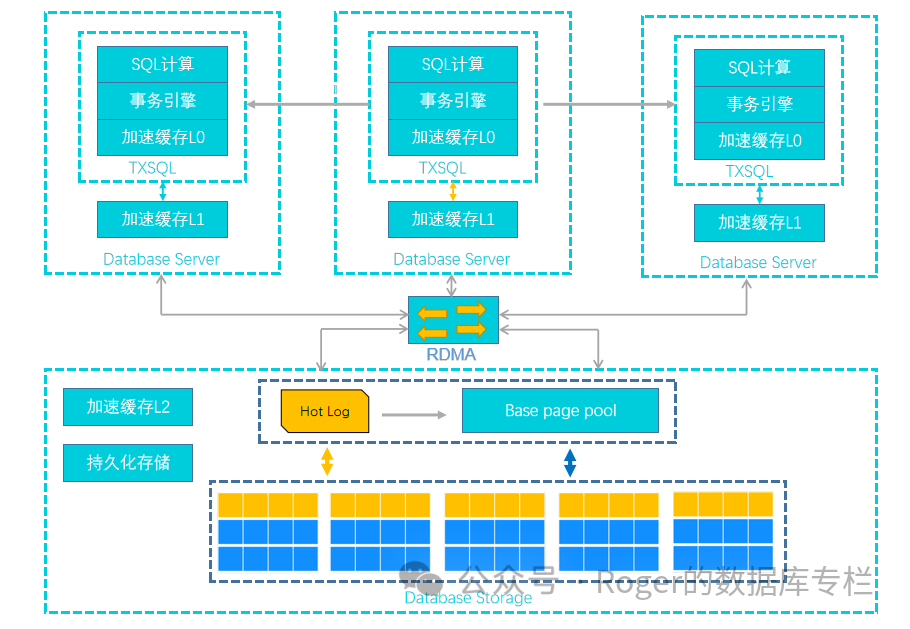 从上述架构来看,TDSQL-C是典型的存算分离架构,同时在计算层和存储层都做了加速处理,中间利用了RDMA高速网络来降低IO延迟。该架构是一写多读模型,最大可以支持15个只读节点(单节点实现10万级QPS,那么16个节点应该可以轻松实现百万级QPS性能了),同时存储层可以实现弹性扩容,实现超大容量存储,可达百TB。底层数据使用Raft进行多副本一致性保证,看上去实现99.99%的计算层高可用是没有任何问题的。
