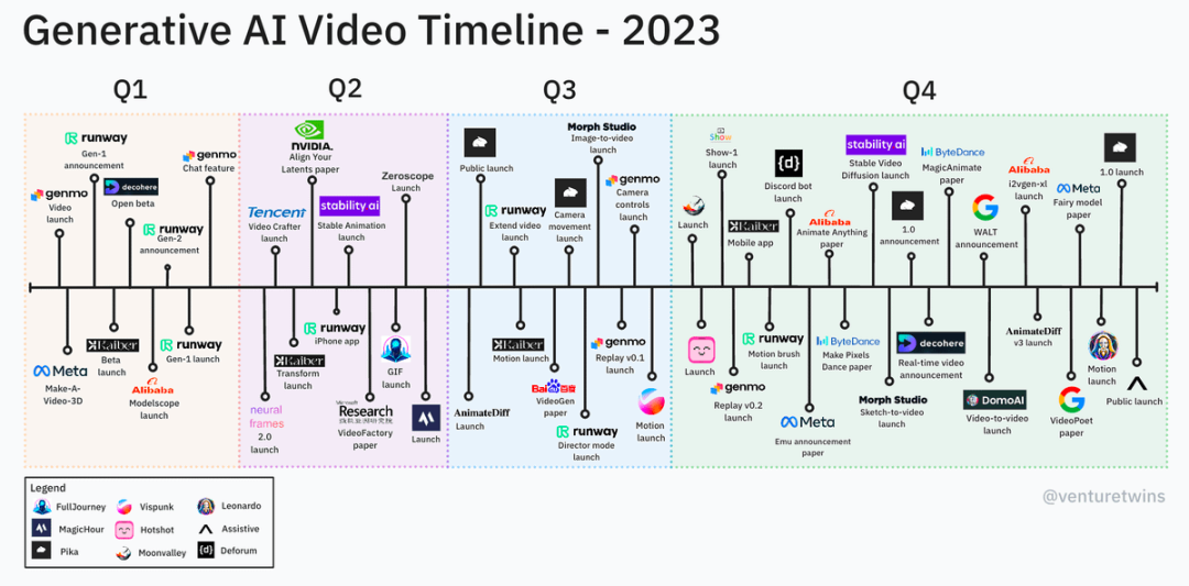 随着一夜爆火的 Pika 1.0 全面开放、Runway 发布的 Gen-2 开始商业化探索、Meta、Moonvalley 和 Stability AI 等公司陆续发布了 AI 视频工具等,视频生成在整个 AI 领域掀起了讨论热潮。与此同时,当我们把视线聚焦在国内的 AI 视频生成领域上,同样也看到了新的研究不断出现。同时,我们也了解到多家视频生成的应用也都将陆续上线。此外,国内创业公司也紧追不舍,将发布 AI 视频工具或应用。由此可见,国内视频生成技术与应用,已经处于爆发的前夕,也是全球整个视频生成领域中一股无法忽视的力量。视频生成前沿技术与应用
