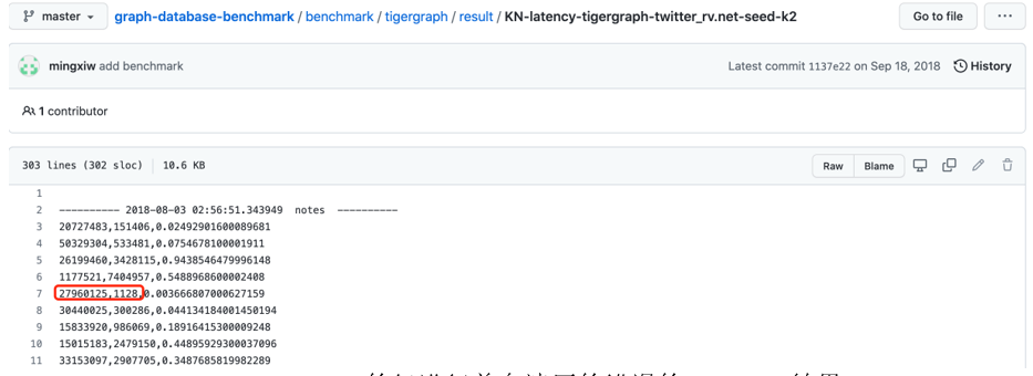 图:Tigergraph的性能评测结果中的数据(参考Github公开的测试结果数据)