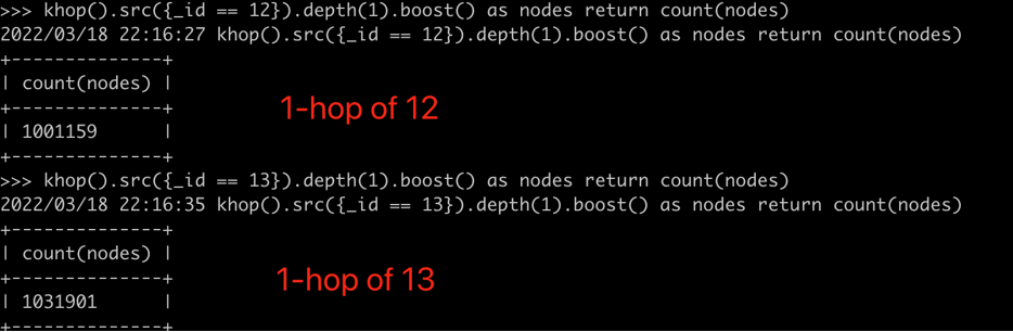 4. 验证方法二:查询顶点13的1跳邻居个数(下图):