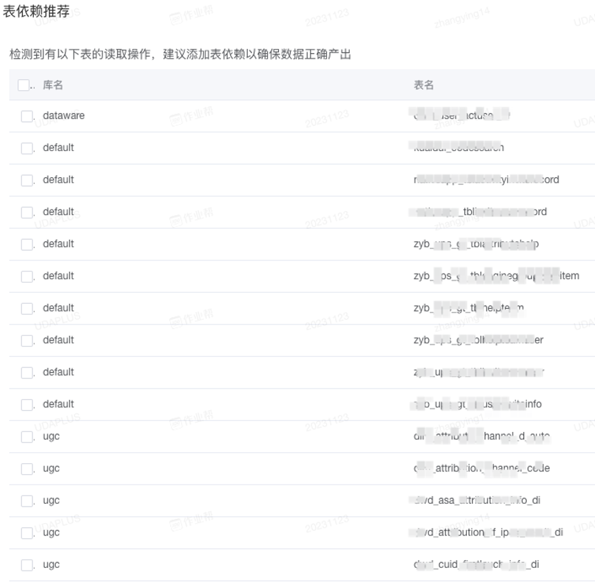 同时,我们在配置依赖的易用性上也做了优化,历史上支持了多种依赖方式:文件依赖、任务依赖、hql 依赖、prestosql 依赖等。后两者都需要用户手动配置查询对应表,我们都优化为了表依赖。平台解析用户的 sql,针对读取的表,自动添加对应的依赖。既提高了易用性,也对用户屏蔽了底层具体表存储类型 (Hive/Presto/Iceberg/...) 的细节:
