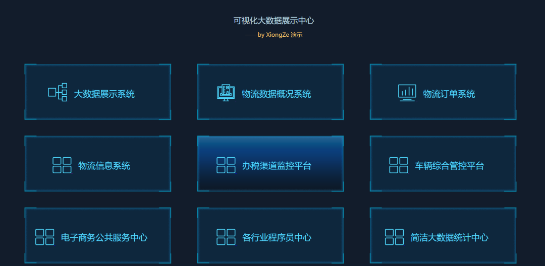 电子商务公共服务中心、各行业程序员中心、简洁大数据统计中心、警务平台大数据统计、农业监测大数据指挥舱、