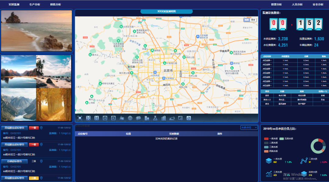 农业监控数据平台、社会治理运行分析云图、水质监测大数据中心、水质情况实时监测预警系统、