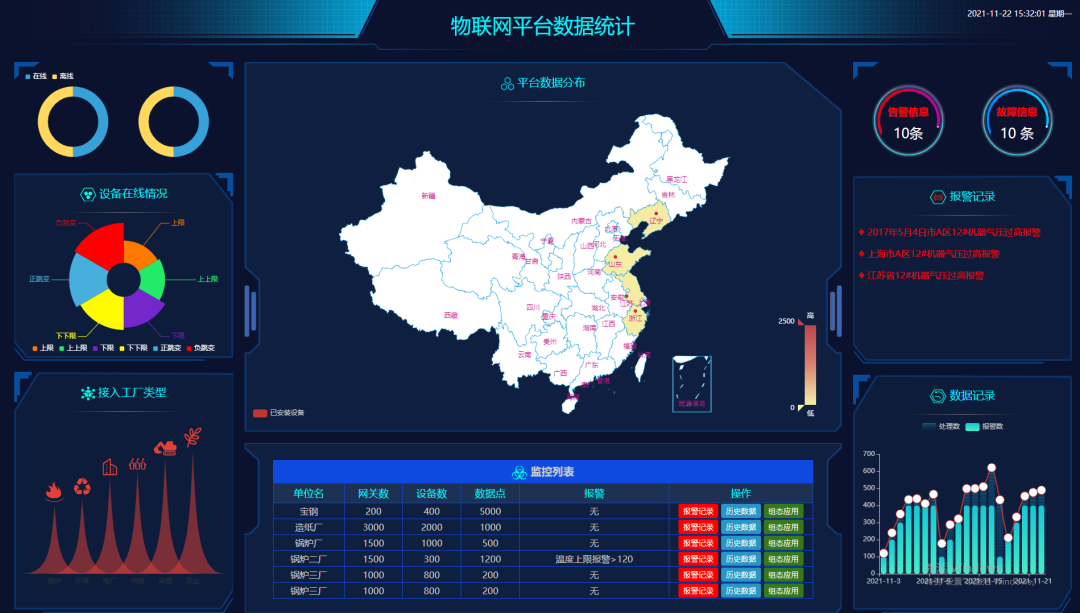 物联网大数据统计平台、消防监控预警、销售数据报表中心、医疗大数据中心、营业数据统中心、