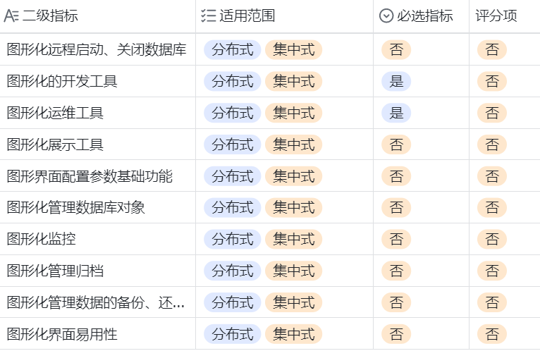 图形化管理能力,是有效降低产品使用难度,提升易用性的手段。标准中也将常用的图形化管理需求进行了整体,这里重点强调对运维和开发的支持。这方面国内厂商产品也大多提供了此能力,也有部分三方数据库管理厂商也提供了此能力。完善的图形化管理,将有效降低用户使用门槛。