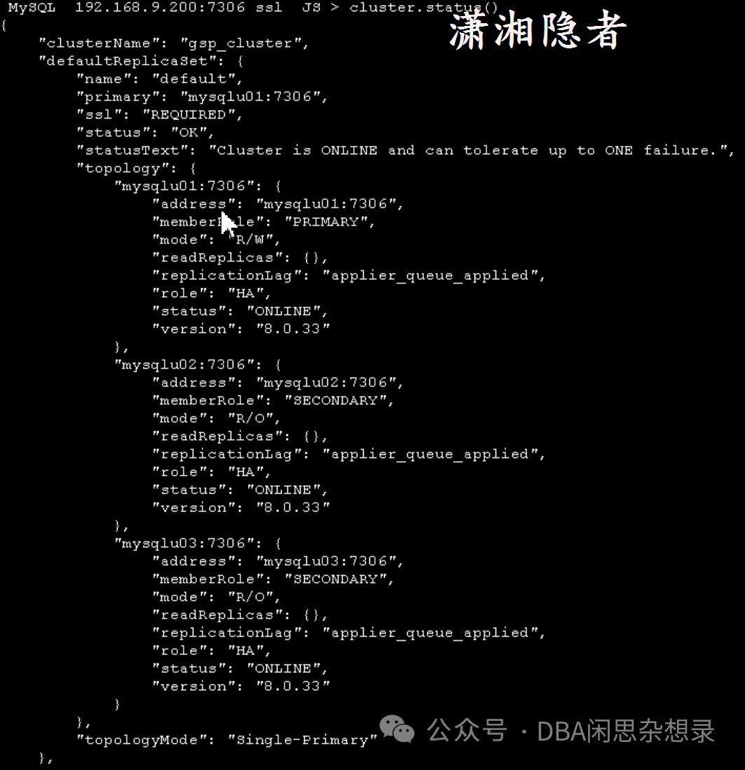 InnoDB Cluster 'gsp_cluster' can be reached by connecting to: