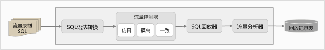 将流量录制的SQL语句在目标上根据配置的回放模式进行回放,实现业务SQL的兼容性验证、执行性能评估、结果一致性验证等。具体原理如下: