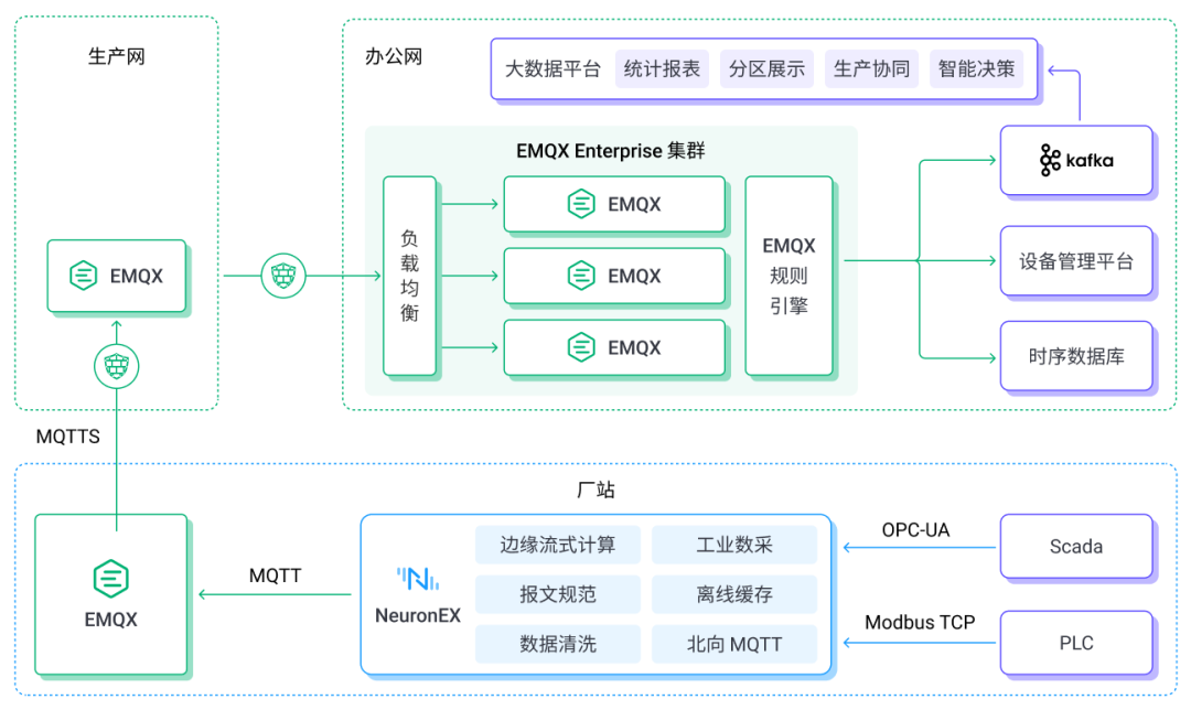 EMQ 边缘工业边缘软件 NeuronEX,可以接入水厂站的生产网络,支持对接各种 PLC、仪表等设备和 SCADA 系统。