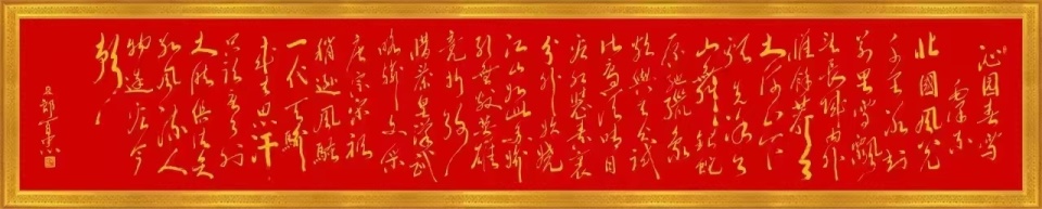 艺术贵在创新,艺术永无止境。我们知道,经典书法作品最感人的就是人格魅力,即情趣品位、境界品位、气象品位。这既是中国历代文人“修身、齐家、治国、平天下”的志向,也是传统的文化价值观。可以说,郎百忠先生的书法作品,既具有高度的政治思想,又具备强烈的艺术色彩,他用灵动的笔墨讴歌新时代党领导人民拼搏奋进的丰功伟业,展现了中华书法艺术的感染力和生命力!中国书法独特的精神气韵之中,沉淀着中华文化的基因。作为一名新时代的书法家工作者,郎百忠先生将以个人的书法追求和新时代的人民需求相呼应,让自己的艺术风格和新时代的文化使命相结合,努力展现新作为,奋力谱写新篇章!