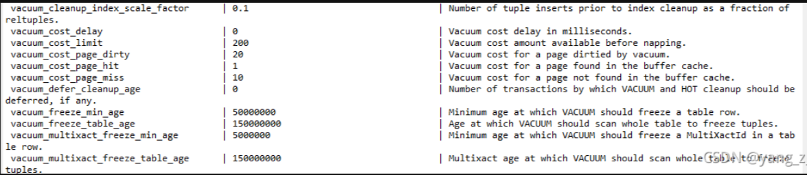 (current_setting('autovacuum_vacuum_threshold')::NUMERIC(12,4))+(current_setting('autovacuum_vacuum_scale_factor')::NUMERIC(12,4))*reltuples AS 自动清理阈值,