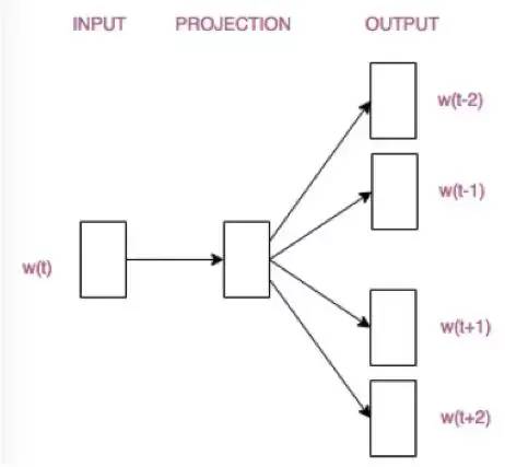 Skip-gram只是逆转了CBOW的因果关系而已,即已知当前词语,预测上下文。