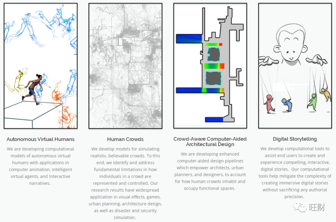 注意到迪士尼的研究[1]、[2]、[3]的最后一位作者都是一个人Mubbasir Kapadia,他是罗格斯大学(Rutgers University)计算机科学系智能视觉界面实验室(Intelligent Visual interface Lab)主任和助理教授。此前,他是苏黎世迪斯尼研究中心的副研究员。Kapadia的研究处于人工智能、视觉计算和人机交互的交叉领域,其任务是开发智能视觉界面,为具有人类意识的建筑设计、数字故事和严肃游戏提供内容创作的能力。他的简介和实验室可以从[4]的链接获取,我这里把他实验室的几个项目罗列如下: