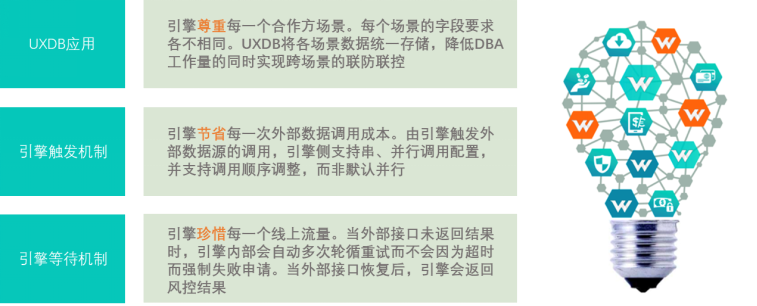 决策引擎通过 UXDB 数据库的应用,更好地支持了数据的混合存储和风控上的联防联控,并降低 DBA 工作压力;通过触发机制和等待机制等设计,降低了数据成本和流量成本。