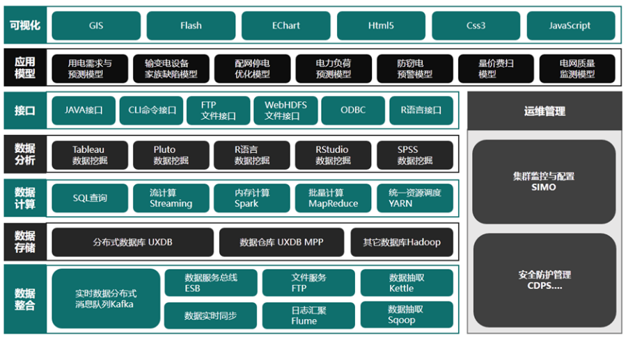 优炫负责应用数据中心的分析域优化,提供统一对外的服务接口,为各类业务应用提供基础数据。如:用电量分析,各个地区经济发展参考数据,各类应用的决策支持等大数据分析结果等,为制定政策提供数据依据。