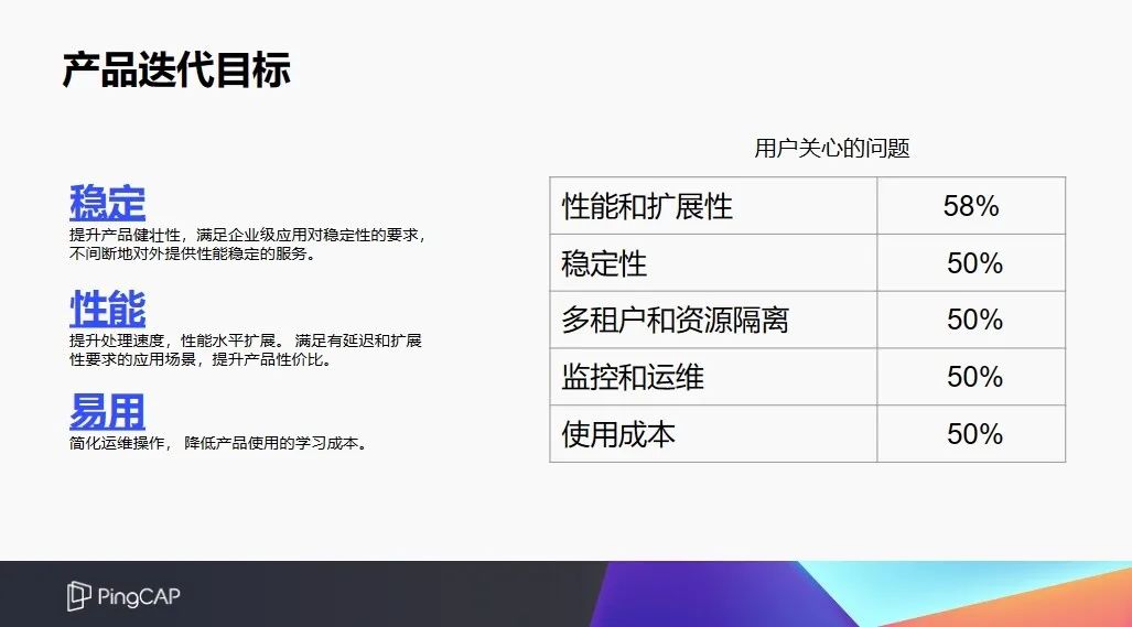 最后我们的 TiDB 内核产品经理和大家分享了未来我们的产品发力重点,稳定、性能、易用!我们相信这是所有用户们最关心的 3 件大事,如何在成本可控的当下满足用户对稳定性和性能的要求,这也是 TiDB 一直奋斗的方向。