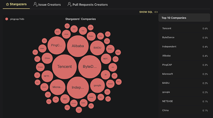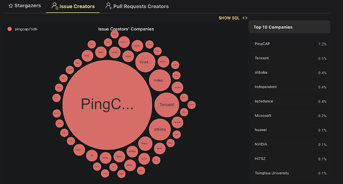 TiDB 开源项目数据&贡献者分布情况