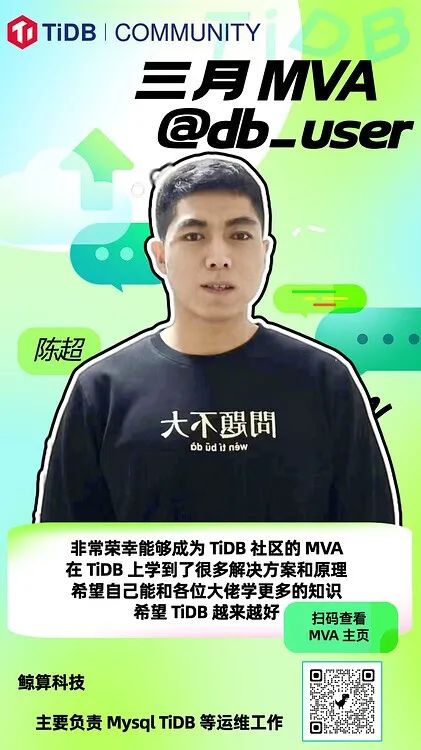 感谢:@xfworld @hey-hoho @Jellybean @eastfisher @数据小黑 @阿福Chris @边城元元 @xuexiaogang@hello_tidb @代晓磊_Mars @tplinux