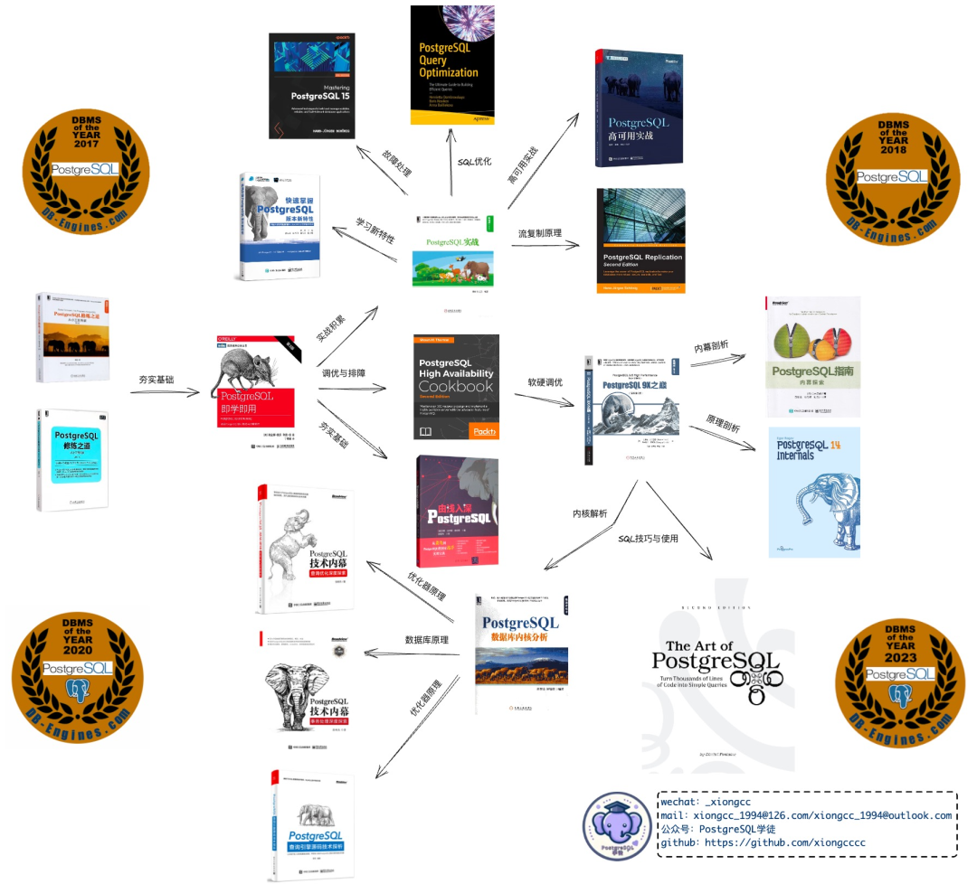 很欣慰能看到 PostgreSQL 生态中又有了一本中文书籍,弥补了相关领域的空白。特别值得一提的是,公众号《PostgreSQL学徒》主理人熊灿灿整理过一篇 PostgreSQL 领域好书推荐。有兴趣学习的朋友可以作为参考。