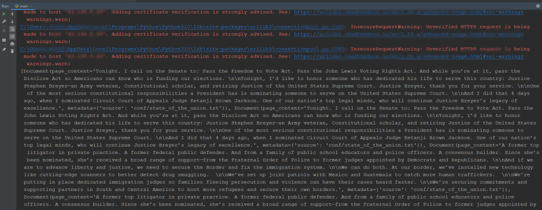 这段代码展示了如何加载、处理文档,并通过 Langchain 结合 Elasticsearch 进行智能检索。