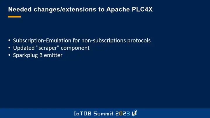 接下来的问题是,需要对 Apache PLC4X 的功能进行哪些调整或扩展?一方面,就像我前面提到的,PLC4X 支持订阅功能,但目前我们只在那些支持订阅的协议上实现了订阅功能,有 Beckhoff ADS、ProfiNet、KnxNet、BacNet 协议,基本上就是这些了。不过我们一直计划在不支持订阅的驱动程序上实现模拟订阅功能。例如在 Modbus 协议中,我们希望在后台轮询某个值,并根据订阅的设置,只有在这个值改变时才触发一个事件。