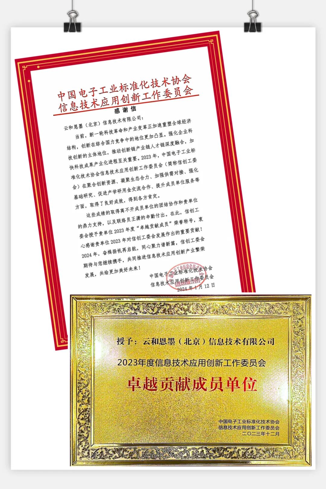 2023年,中国电子工业标准化技术协会信息技术应用创新工作委员会(简称:信创工委会)在聚合创新资源、凝聚生态合力、加强供需对接、强化基础研究、促进产学研用金交流合作、提升成员单位服务等方面,取得了良好成效。此过程中,云和恩墨对信创工委会工作的鼎力支持和重要贡献得到了工委会的高度认可和感谢,因此荣获2023年度“卓越贡献成员”称号,这也是继2022年度后公司连续第二年获此殊荣。这一荣誉不仅是对云和恩墨过去一年努力的肯定,也是对公司未来继续发挥创新引领作用的期许。