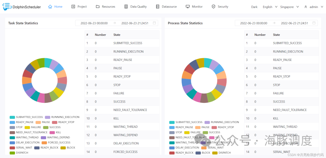 DolphinScheduler 提供了一个可视化的 Web 界面,用户可以使用该界面来配置任务和工作流,监控任务的执行状态,以及管理系统的权限和用户。