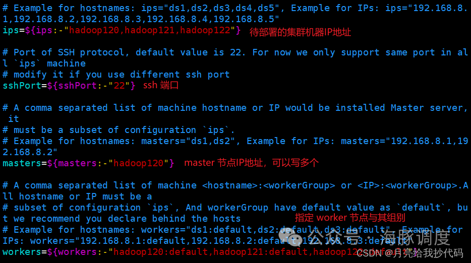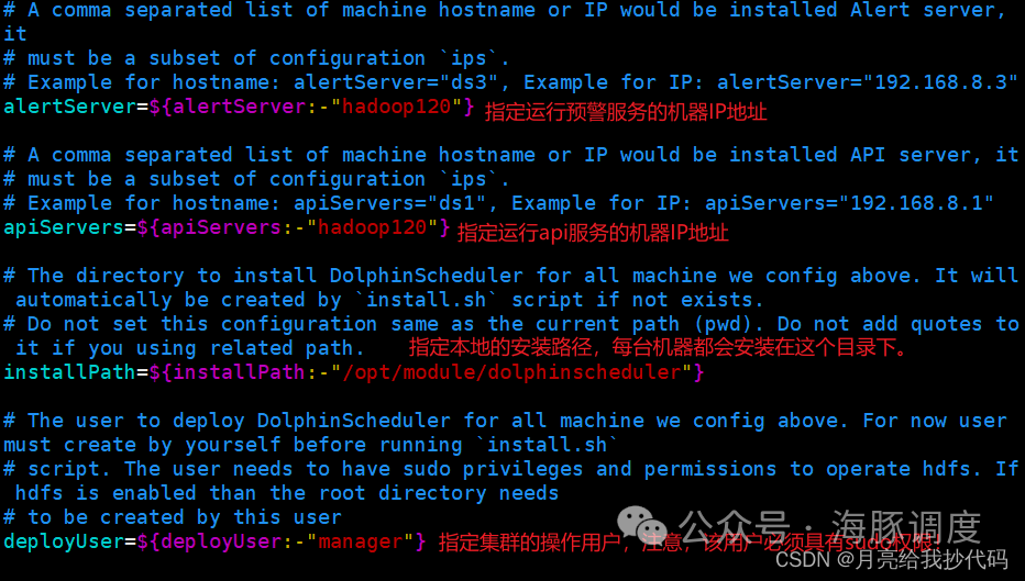 描述了哪些机器将被安装 DolphinScheduler 以及每台机器对应安装哪些服务。