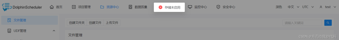 DolphinScheduler 的资源中心包括文件管理、UDF 管理以及任务组管理,其作用主要就是管理这些资源,让用户管理起来更加方便、简洁明了。