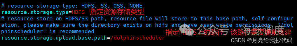 # 创建资源存储目录hadoop fs -mkdir -p /dolphinscheduler# 创建文件夹组设定为 DolphinScheduler 的用户hadoop fs -chown -R dolphinscheduler:dolphinscheduler /dolphinscheduler# 添加权限hadoop fs -chmod 777 /dolphinscheduler