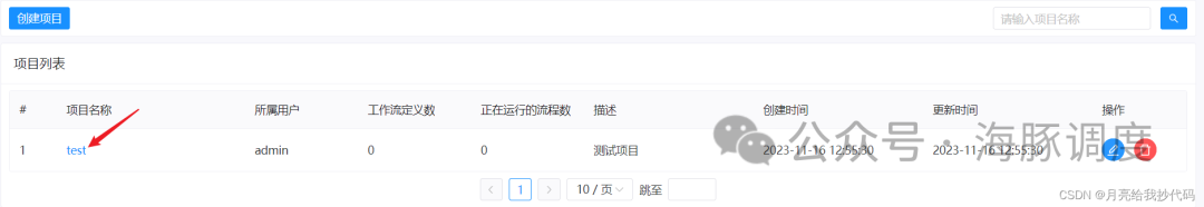 项目创建完成后,点击项目名称,进入工作流的设置界面:
