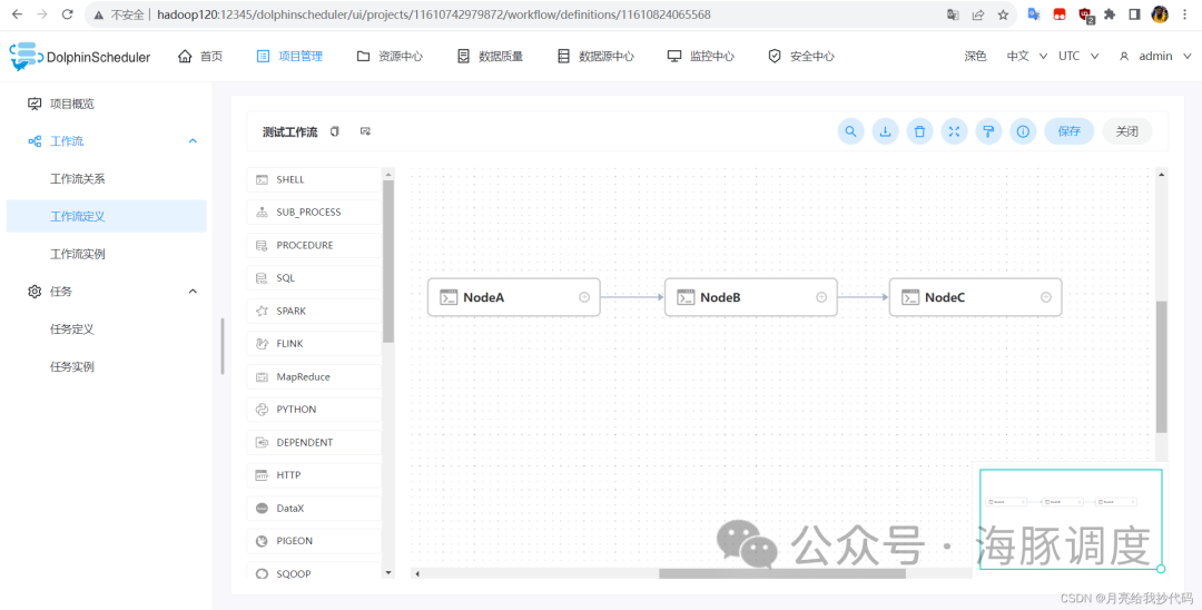 授权完成后,使用刚刚授权的普通用户登录到 DolphinScheduler。