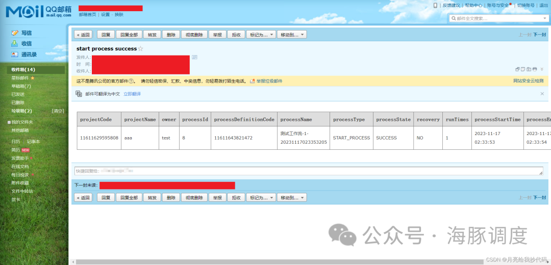 我这里选择的通知策略是不管成功或失败都发送通知,设置完成后,点击确定,等待工作流执行完成后,就会收到发送过来的通知邮件了(有 10 秒左右的延迟)。