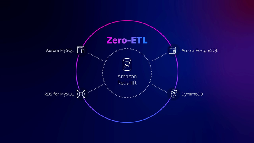 Amazon Redshift 与 Amazon Aurora PostgreSQL、Amazon DynamoDB、以及 Amazon RDS for MySQL 实现完全托管的 Zero-ETL 集成。与稍早发布的 Aurora MySQL 集成一起,目前主要承载事务数据的关系型与非关系型数据库,均已实现与 Amazon Redshift 数仓平台的 Zero-ETL 集成,用户可以通过 Redshift 更轻松地连接和关联这些分布在不同数据库内的事务数据,并提供近乎实时的数据分析,以加速数据决策。