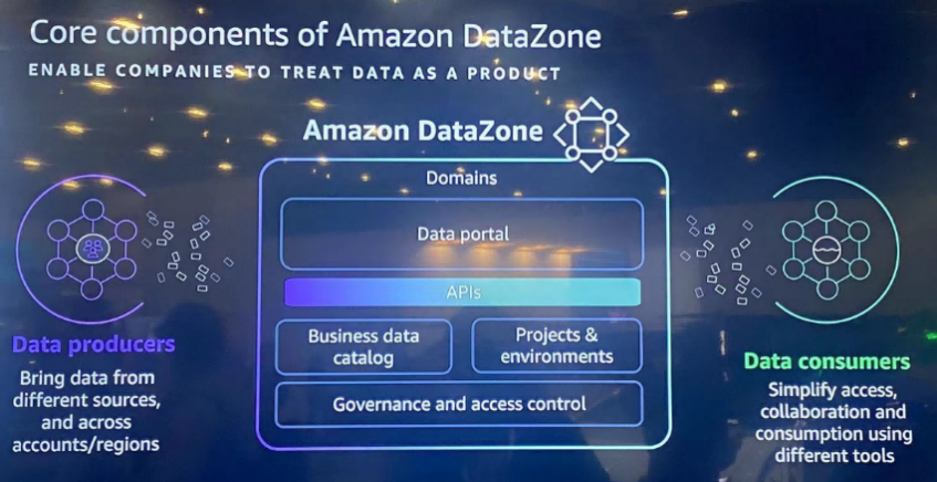 数据的实时洞察能力,是未来车企发展中不可或缺的环节。在展区,用户通过 Amazon DataZone 和 QuickSight Q 演示了 OEM 不同角色或部门如何快速对感兴趣的数据进行访问,通过自然语言轻松构建和使用见解。Amazon DataZone 抽象了数据生产者和消费者之间的数据共享过程,对数据进行编目,无缝访问分析工具,而 Amazon Q in QuickSight 是一个生成式 BI 助手,在 Demo 的销售体系数据中自动生成上下文摘要,无需数据分析师的介入,业务人员即可搜索和快速发现有价值的数据集,并获得更精准的数据使用指导,充分释放数据价值。
